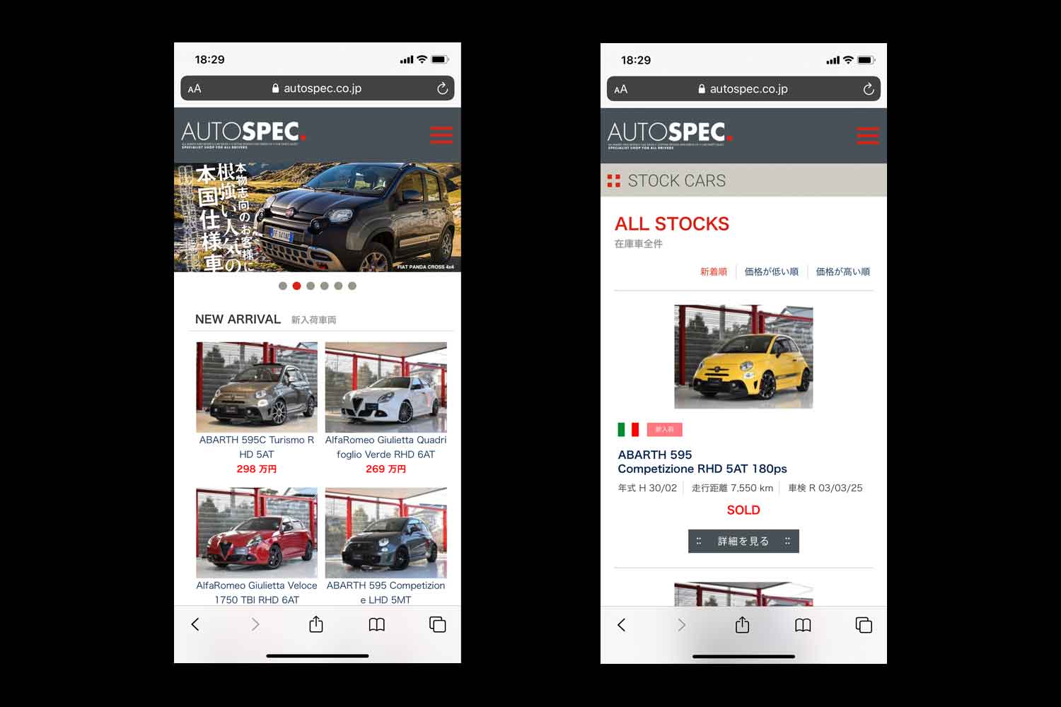 as01img as02img as03img WEBサイトAUTOSPEC.WEB 輸入車ショップ アウトスペック様のWEBサイトを制作しました。 同社が社内で使用している在庫車管理システムのデータを流用できるWEBシステムをはじめ、社内スタッフが更新できるコンテンツを多数盛り込んでいます。新規で追加できる特集コンテンツと、スライドバナー等の制作関連は定期契約により管理・更新しています。 サイトhttps://www.autospec.co.jpClient 株式会社アウトスペックwork direction,design